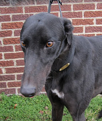The first day with Peter has been a lot of fun. It is easy to see why this sweet boy was favorite of the trainers at the track. I let my hounds outside when he got here so he could walk around and check things out, and within the first five minutes, he had kissed every human in the house several times and was already playing with stuffies! He is a happy boy - that tail never stops wagging.